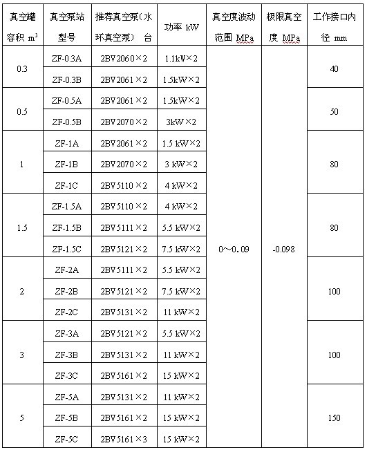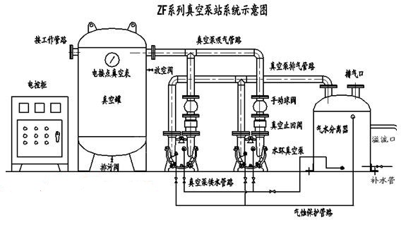 ZF系列真空泵站(又名真空發(fā)生裝置、真空負壓站等)是以一臺或二臺水環(huán)真空泵作為真空獲得設(shè)備,以真空罐作為真空存儲設(shè)備的成套系統(tǒng)。對于頻繁使用真空源而所需抽氣量不太大的場合下,該系統(tǒng)比直接使用真空泵大大節(jié)約了能源,并有效提高了真空泵的使用壽命。